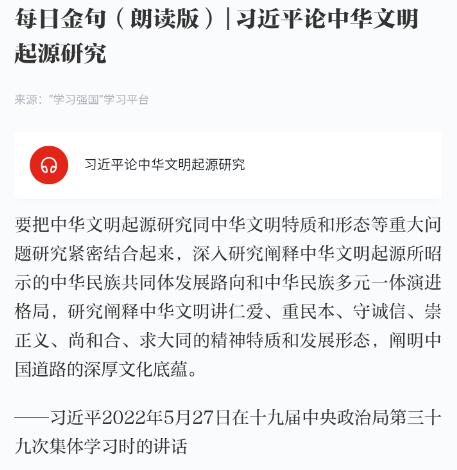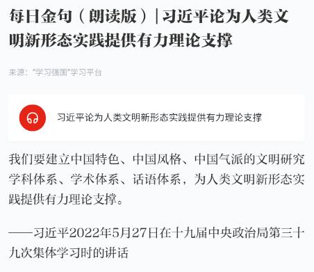 每日金句| 習近平論為人類文明新形態(tài)實踐提供有力理論支撐? ? 我們要建立中國特色、中國風格、中國氣派的文明研究學科體系、學術體系、話語體系,為人類文明新形態(tài)實踐提供有力理論支撐。? ? ——習近平2022年5月27日在十九屆中央政治局第三十九次集體學習時的講話 2022-08-16