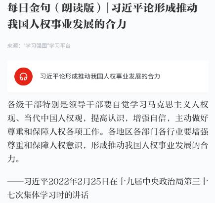 習近平論形成推動我國人權事業(yè)發(fā)展的合力? ? 各級干部特別是領導干部要自覺學習馬克思主義人權觀、當代中國人權觀,提高認識,增強自信,主動做好尊重和保障人權各項工作。各地區(qū)各部門各行業(yè)要增強尊重和保障人權意識,形成推動我國人權事業(yè)發(fā)展的合力。? ? ——習... 2022-08-21