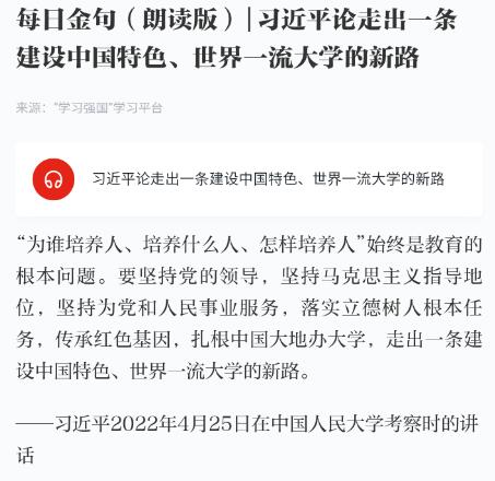 每日金句(朗讀版) |習近平論走出一條建設中國特色、世界一流大...? ?習近平論走出一條建設中國特色、世界-流大學的新路“為誰培養(yǎng)人、培養(yǎng)什么人、怎樣培養(yǎng)人”始終是教育的根本問題。要堅持黨的領導,堅持馬克思主義指導地位,堅持為黨和人民事業(yè)服務,落實立德樹人根本任務,傳承紅色基因,... 2022-09-01