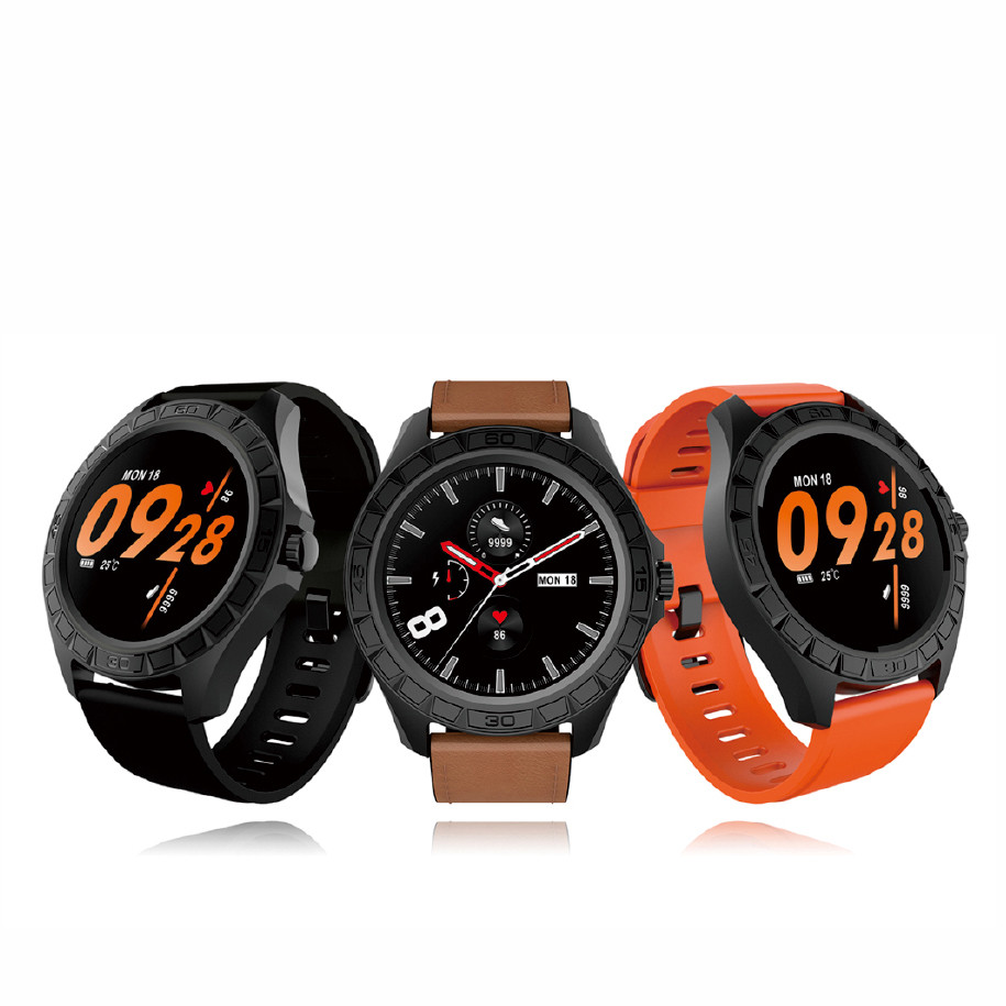 1.3”全圓全觸顯示屏 獨(dú)家個(gè)性化精美表盤,且APP能推送 24 H連續(xù)實(shí)時(shí)動(dòng)態(tài)心率 300mAH大容量電池,續(xù)航時(shí)間達(dá)15天以上 支持23種多運(yùn)動(dòng)模式 支持17國(guó)的本地化UI語(yǔ)言 支持IP68防水級(jí)別 搭配皮質(zhì)表帶和TPU表帶,兼顧商務(wù)和運(yùn)動(dòng)風(fēng)格 可接受為客戶免費(fèi)定制表盤,彩盒包裝,表帶顏色,表扣鐳雕LOGO內(nèi)容